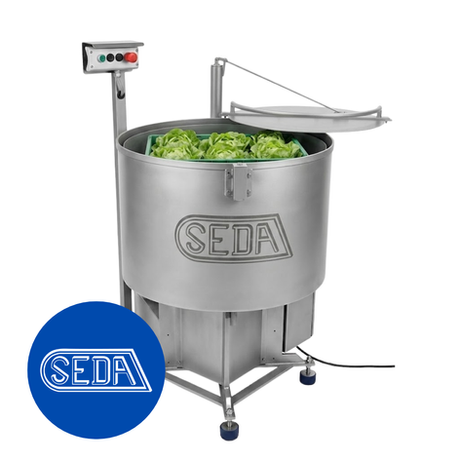 The S112 salad spinner is a robust and efficient device specially designed for processing salads. It allows you to spin whole heads of lettuce, lamb's lettuce and spinach in one or two grids, such as "G" or IFCO. With its adjustable speed and powerful motor, it offers excellent performance. The built-in brake motor provides additional safety and control. The spinner is equipped with vibration-absorbing rubber feet that ensure stability during operation. Thanks to its sturdy design and manufacture in Switzerland, it guarantees a long service life and high quality.